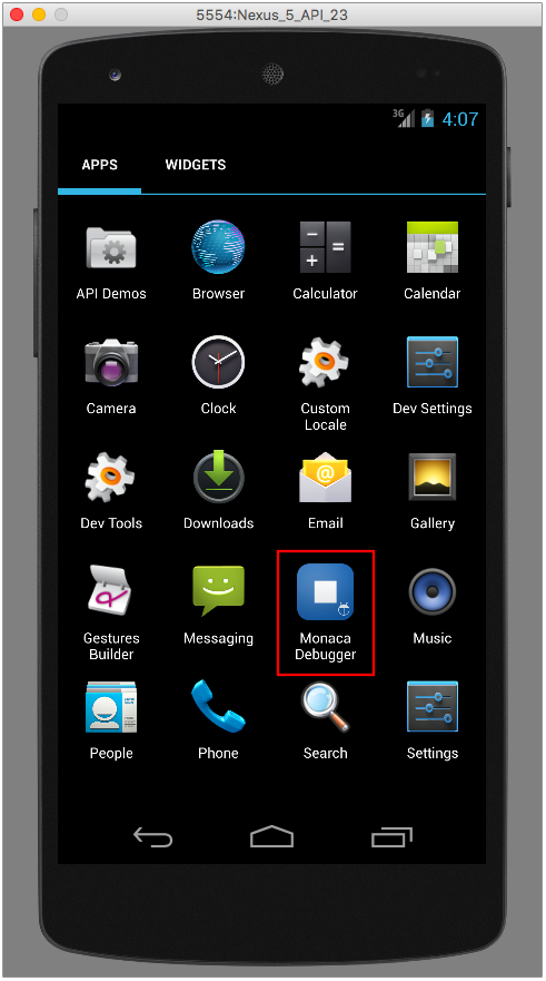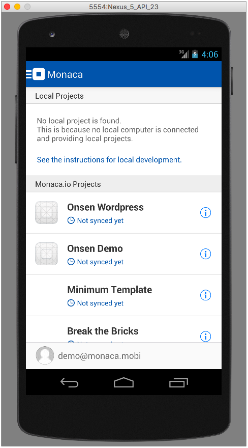 On this page, we will describe how the Monaca Debugger works on an AVD (Android Virtual Device) called Android Emulator. You can simulate Android apps on a PC with it. Moreover, it is useful when you want to test your apps on more than one Android device.