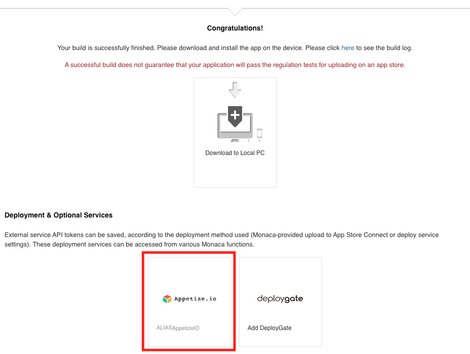 Please refer [Deploy to Appetize.io](https://ja.docs.monaca.io/products_guide/monaca_ide/monaca_ci/appetizeio) for registering `Appetize.io`.