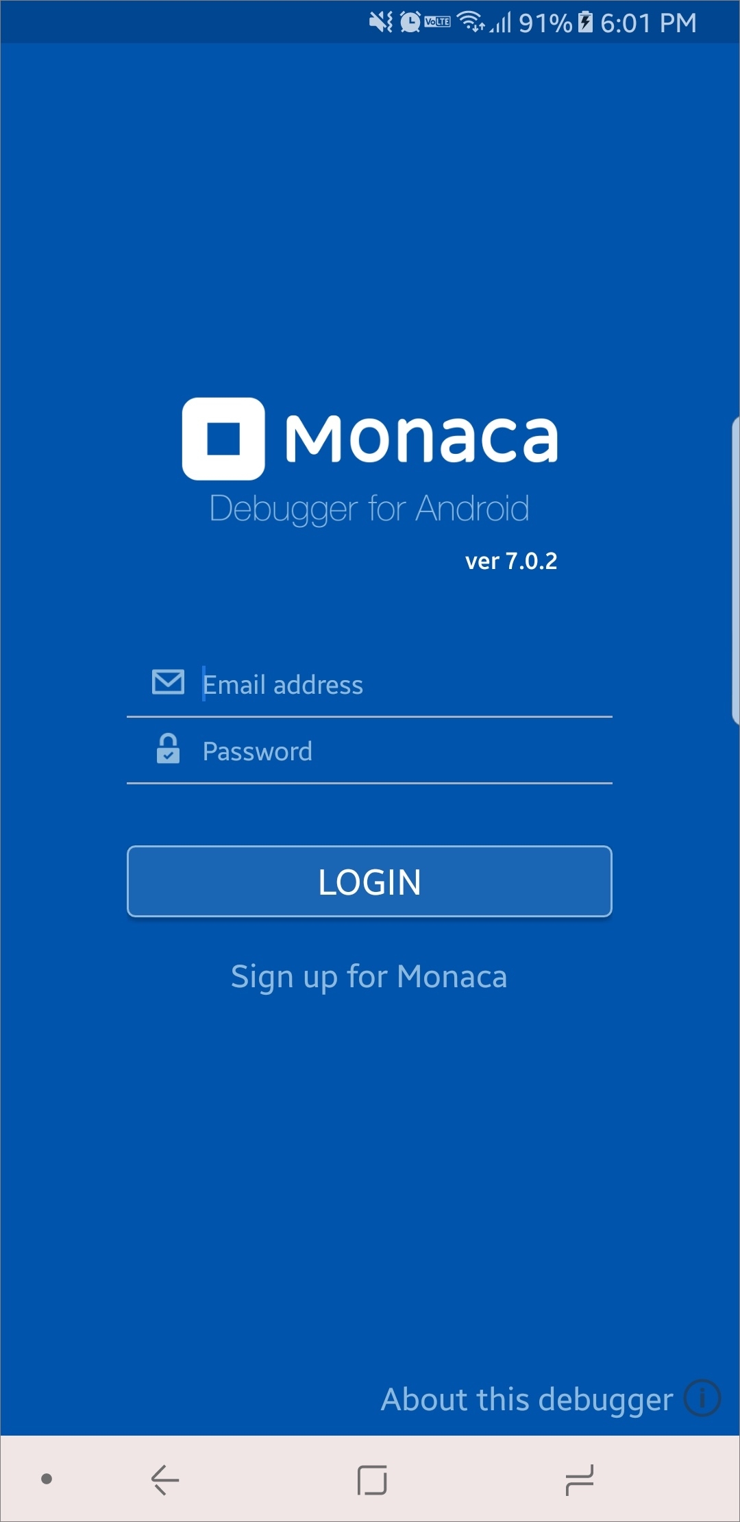 2. Launch the Monaca Debugger app and sign in with your Monaca account. Make sure you are using the same account as for Monaca CLI.