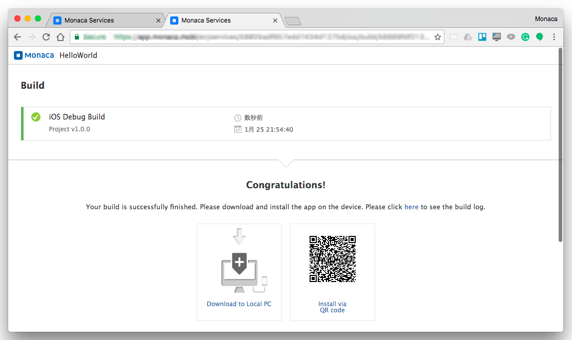 3. It may take several minutes for the build to complete. Once the build is completed, your built app is ready to be installed/downloaded. See the below screenshot as an example: