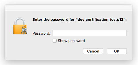 5. Double-click the downloaded file. Input the password of the file and click OK. After that, you can use the private key and certificate in Xcode.
