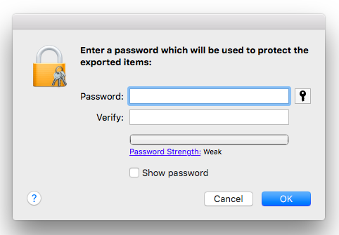 3. Then, you will be asked to input a password before exporting. Remember this password as it is required when importing this certificate later.