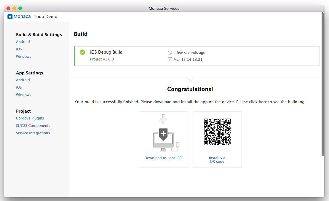 For more information on how to build Monaca Apps for other platforms, please refer to Build.